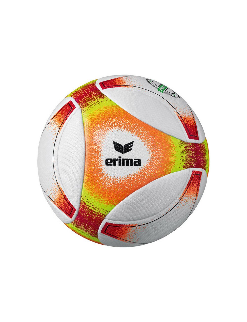 Ballon de match innovant Futsal avec technologie hybride ERIMA qui combine les avantages d'un ballon collé et d'un ballon cousu main. Valve ABS/vessie Butyl garnie de laine-polyester pour un plus petit rebond Remplissage à base de bouteilles PET recyclées SPEEDCONTROL 20 : conception innovante ERIMA à base de plaques ERIMA Hybrid Technologie PU microfibre extrêmement stable en structure 3 D