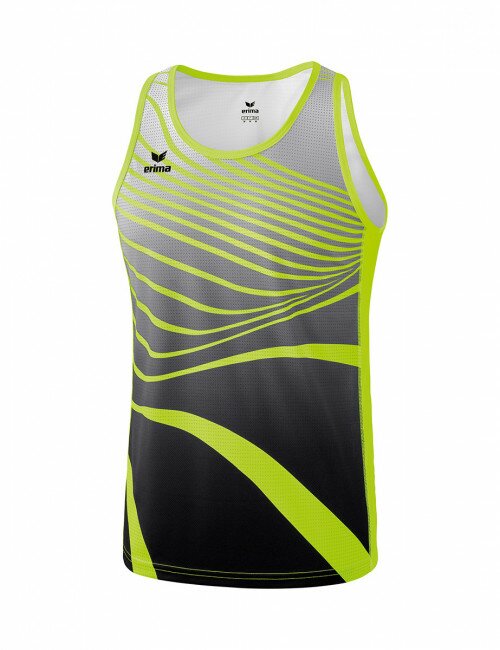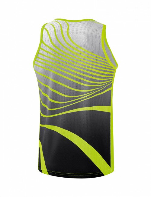 Sensation de fraîcheur quelle que soit la discipline pratiquée. Matière textile légère et régulant l'humidité Larges emmanchures permettant une liberté de mouvement totale Coutures plates minimisant le frottement Ajustement près du corps avec découpe en U Imprimé ondulé dynamique