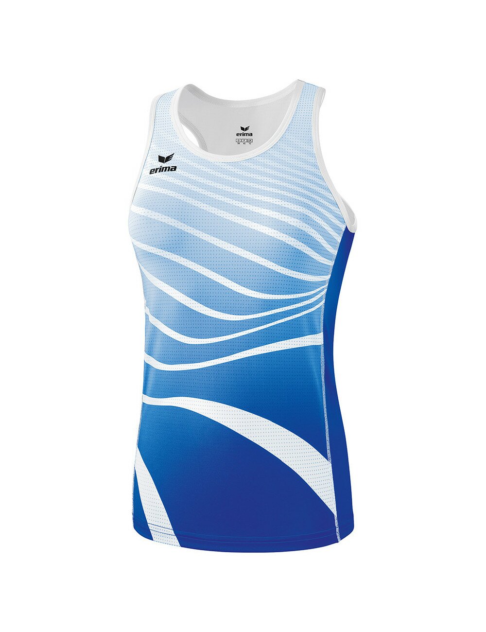 Sensation de fraîcheur quelle que soit la discipline pratiquée. Matière textile légère et régulant l'humidité Dos nageur permettant une liberté de mouvement totale Coutures plates minimisant le frottement Ajustement cintré avec découpe en U Imprimé ondulé dynamique