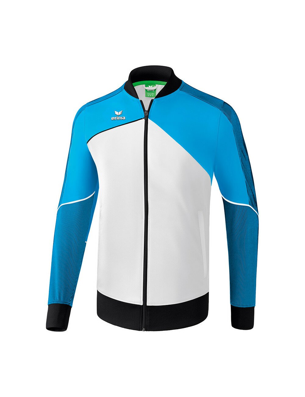 Pour en finir avec les vestes de présentation classiques. Matière textile élastique, régulant l'humidité Empiècements en stretch sur les manches pour une plus grande liberté de mouvement Larges bords-côtes sur les manches et bas de veste Poches zippées latérales Col Teddy Sans doublure