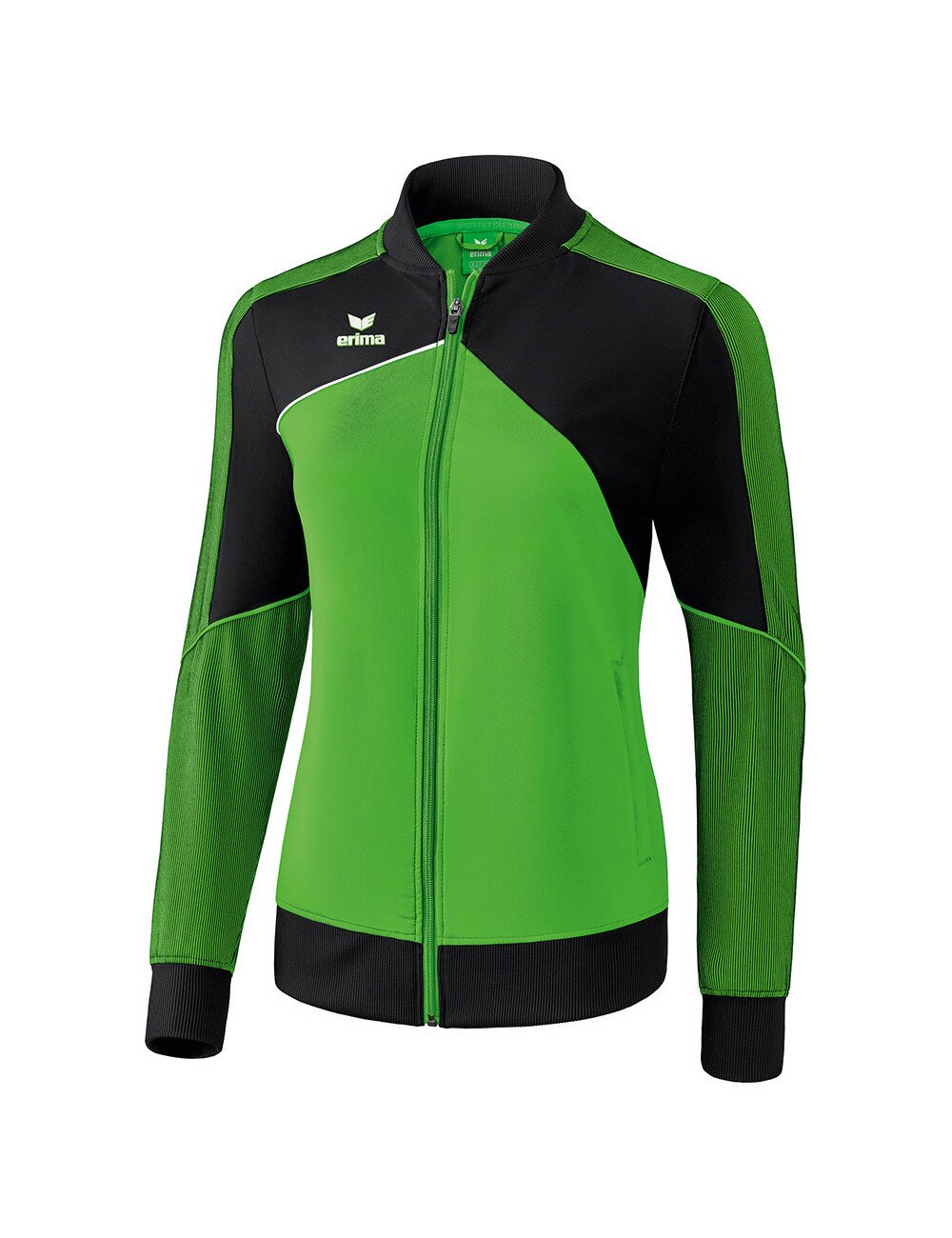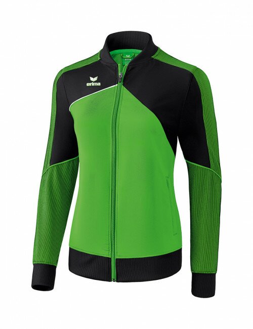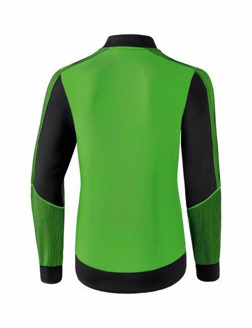 Pour en finir avec les vestes de présentation classiques. Matière textile élastique, régulant l'humidité Empiècements en stretch sur les manches pour une plus grande liberté de mouvement Larges bords-côtes sur les manches et bas de veste Poches zippées latérales Col Teddy Sans doublure Coupe femme spécifique