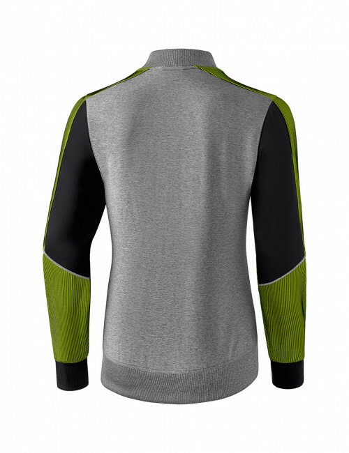 Pour en finir avec les vestes de présentation classiques. Matière textile élastique, régulant l'humidité Empiècements en stretch sur les manches pour une plus grande liberté de mouvement Larges bords-côtes sur les manches et bas de veste Poches zippées latérales Col Teddy Sans doublure Coupe femme spécifique