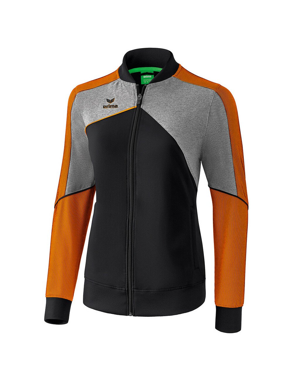 Pour en finir avec les vestes de présentation classiques. Matière textile élastique, régulant l'humidité Empiècements en stretch sur les manches pour une plus grande liberté de mouvement Larges bords-côtes sur les manches et bas de veste Poches zippées latérales Col Teddy Sans doublure Coupe femme spécifique