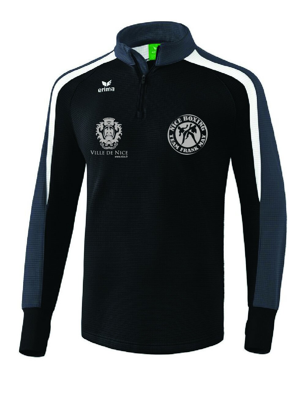 Sweat d'entraînement respirant pour les froides journées sur le terrain de football. Matière textile résistante, régulant l'humidité Fermeture éclair courte avec protège-menton Col officier protège et conserve la chaleur Poignet avec passe-pouce Bas de veste