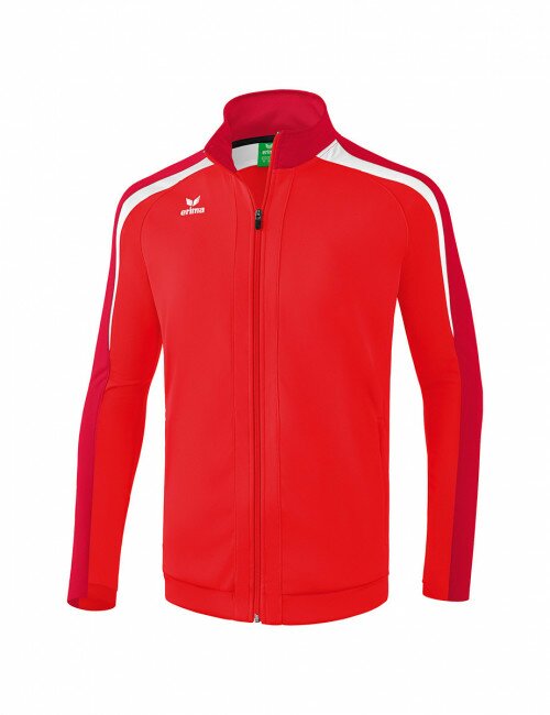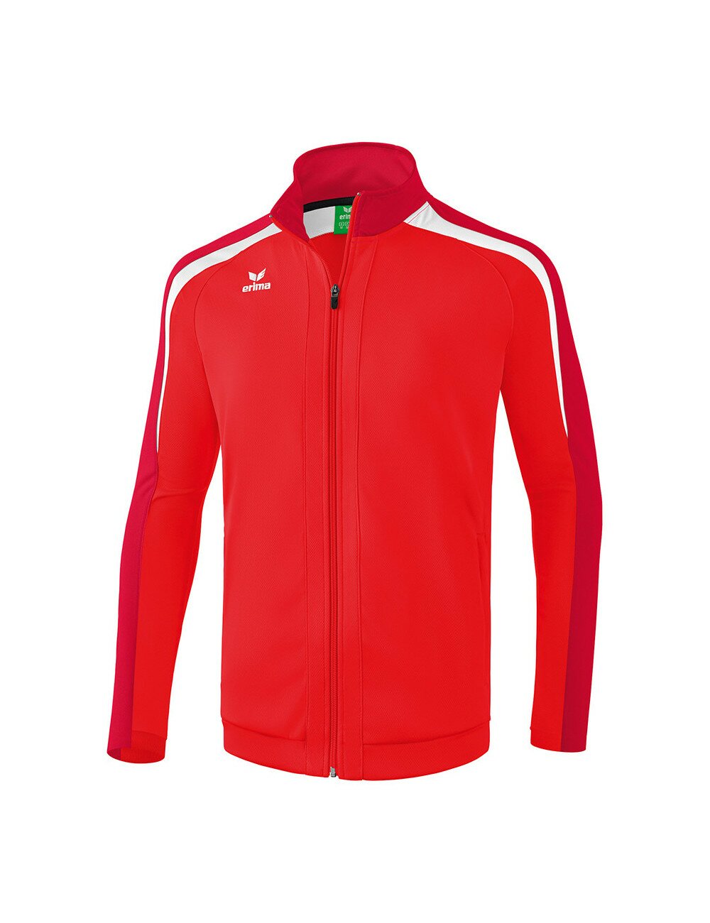 Veste d'entraînement solide pour les séances quotidiennes. Matière textile résistante, régulant l'humidité Col officier protège et conserve la chaleur Extrémité de manche légèrement rallongée, arrondie Bords-côtes sur les manches et bas de veste Poches zippées latérales